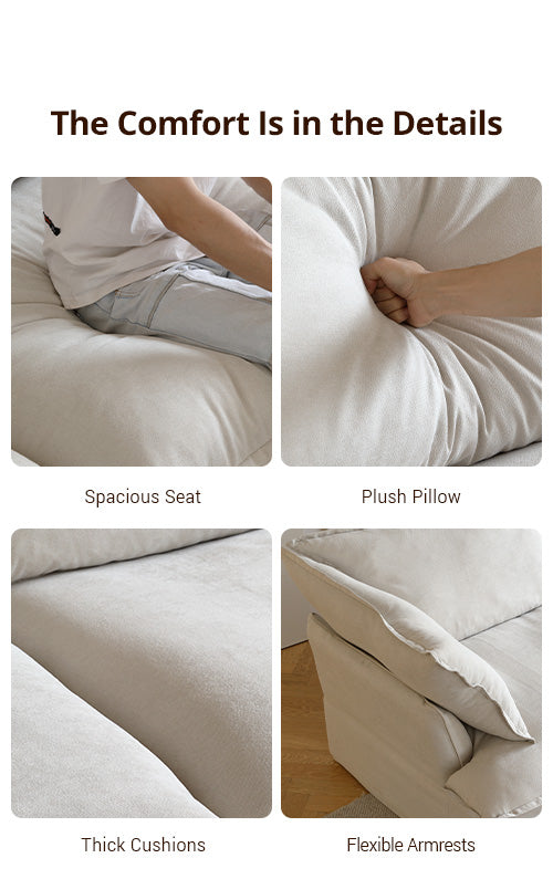 Sky Classic Linen Cloud Sofa is designed to fit various room sizes. It is highly modular, allowing users to arrange it as a loveseat, U-shaped, L-shaped, or long bench.