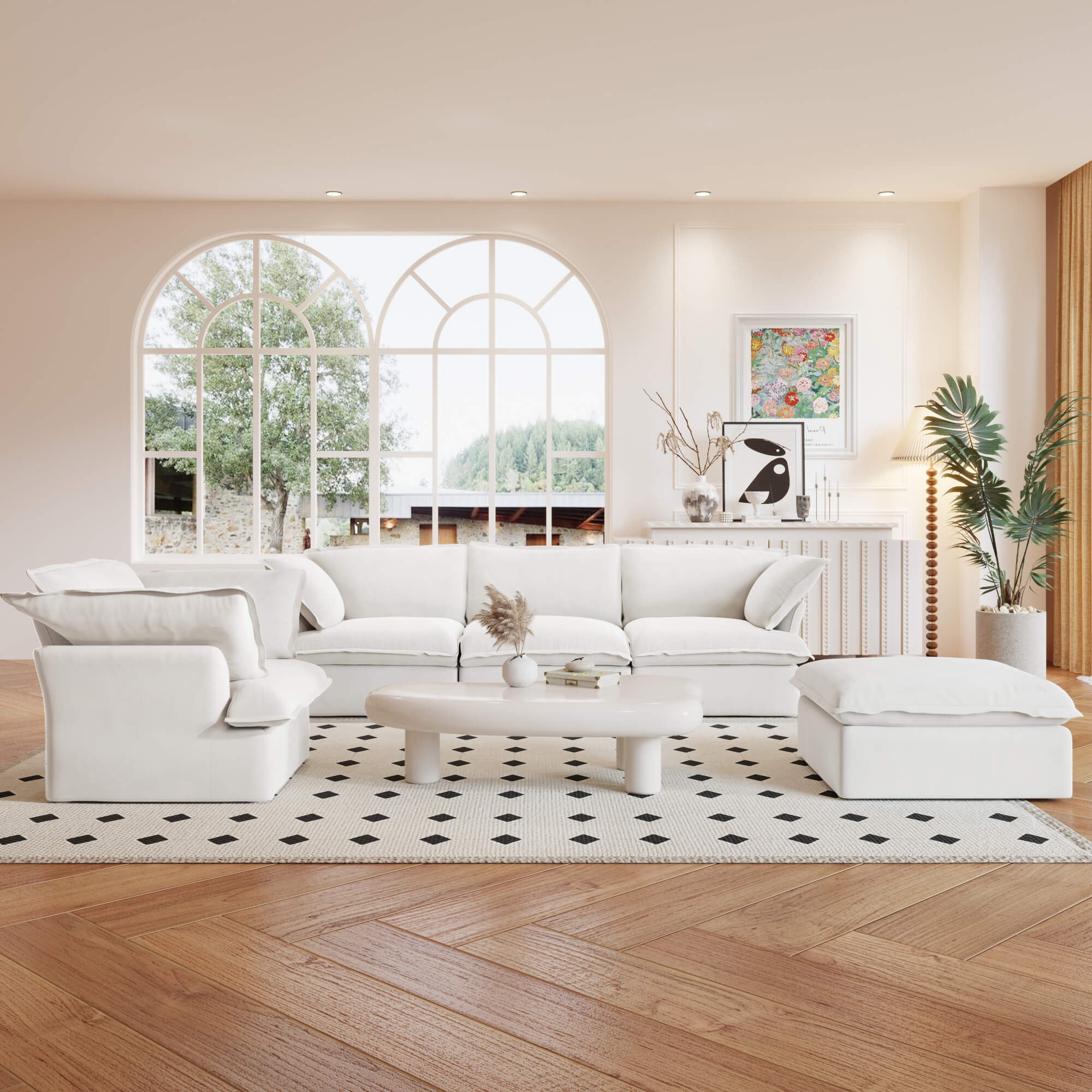 Sky Classic Linen Cloud Sofa is designed to fit various room sizes. It is highly modular, allowing users to arrange it as a loveseat, U-shaped, L-shaped, or long bench.